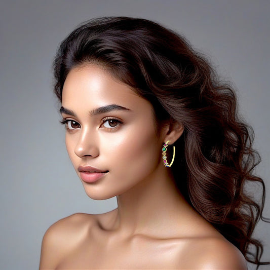 18K Gold Rose Quartz Gemstone Hoop Earrings