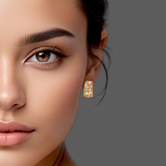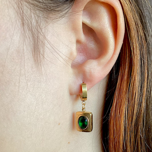 18K Gold Rose Quartz Gemstone Hoop Earrings