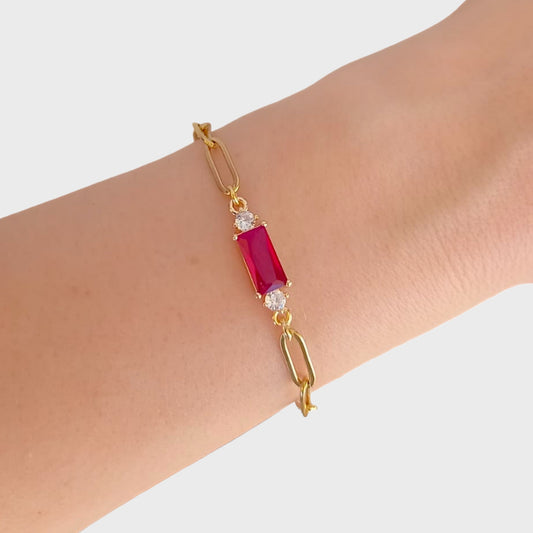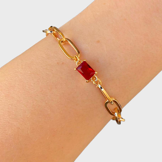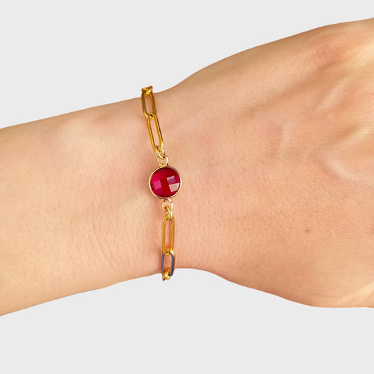 Garnet Gold Paperclip Bracelet
